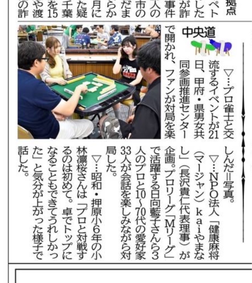 8月21日。NPO法人健康麻将kaiやまなし主催のプロ雀士と交流するイベントが開かれました。